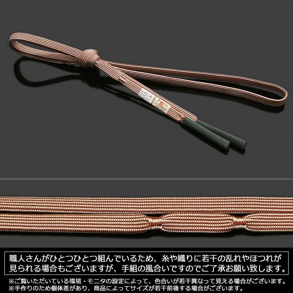 3. 【Prices down2】正絹帯締め 洒落向け「ブラウン ストライプ」洒落小物 日本製 京都西陣 洒落帯締め 0ss2512ojm60