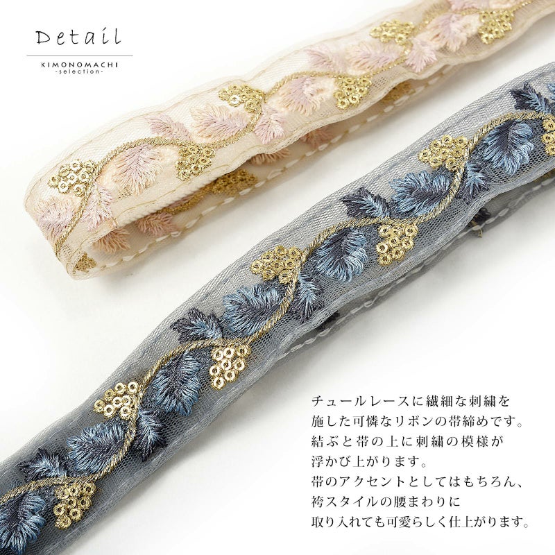 チュールレースに繊細な刺繍を施した可憐なリボン帯締めです。