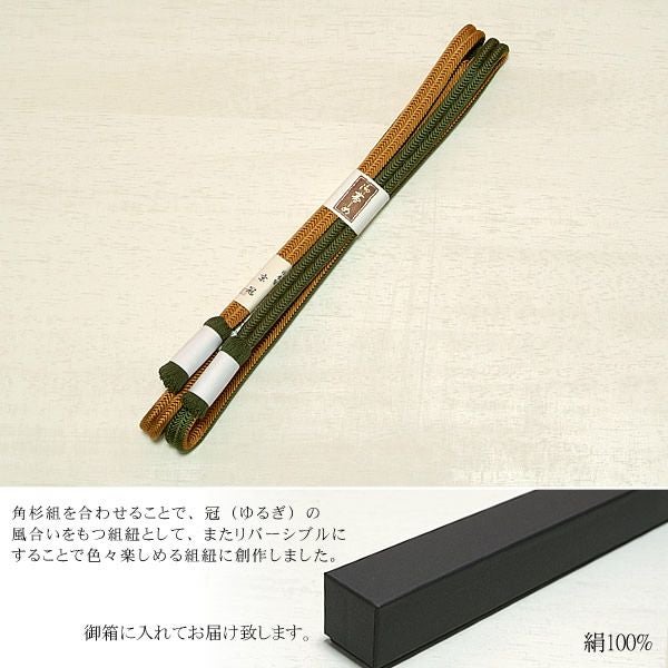 他の画像を見る 帯締めリバーシブルタイプ 日本製帯締め「翠嵐工房帯〆」3濃い抹茶色×黄土色帯締めリバーシブルタイプ【メール便不可】<R> きもの町価格 ¥ 8,360 税込 在庫切れ 再入荷お知らせ お気に入りに登録する