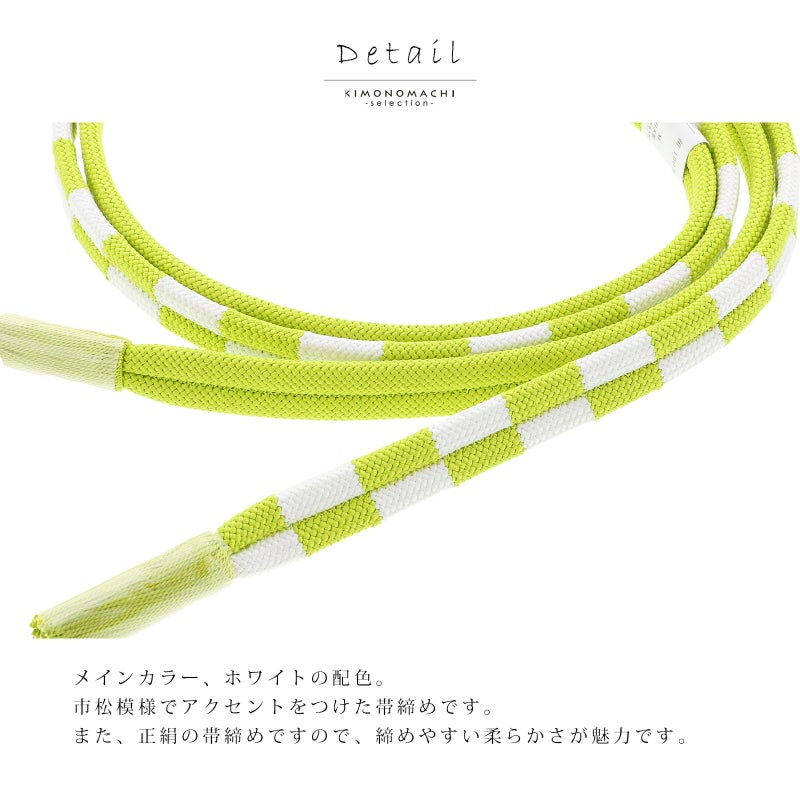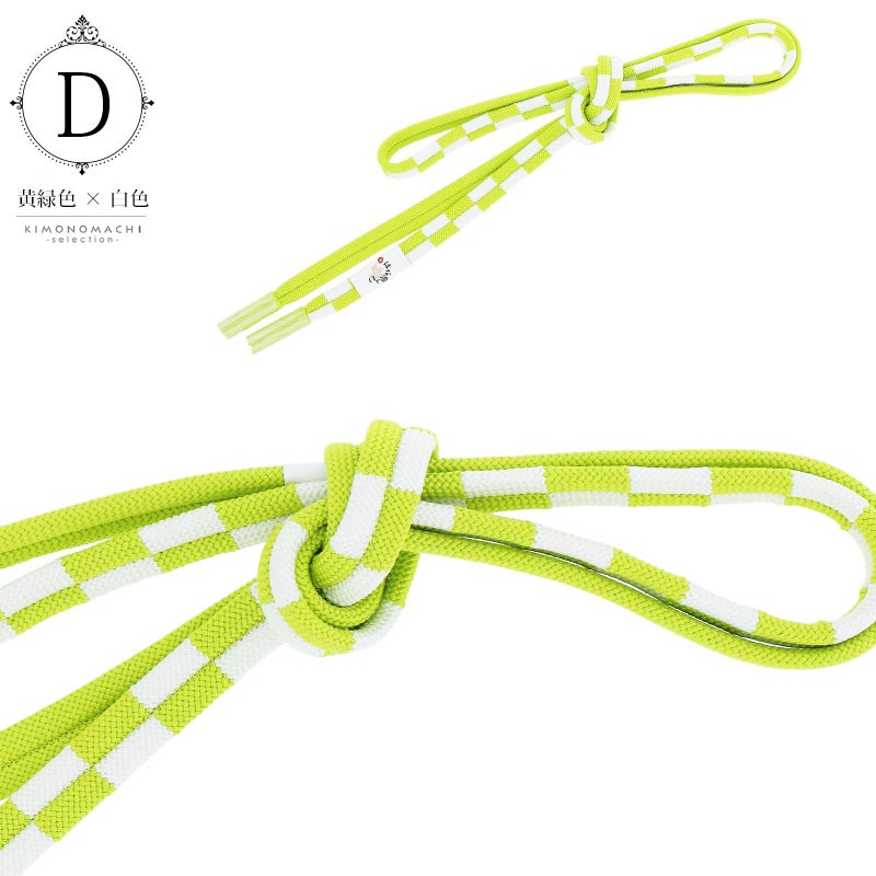 D.黄緑色×白色…半分は黄緑、半分は黄緑と白の市松模様でアクセントをつけた帯締めです。
