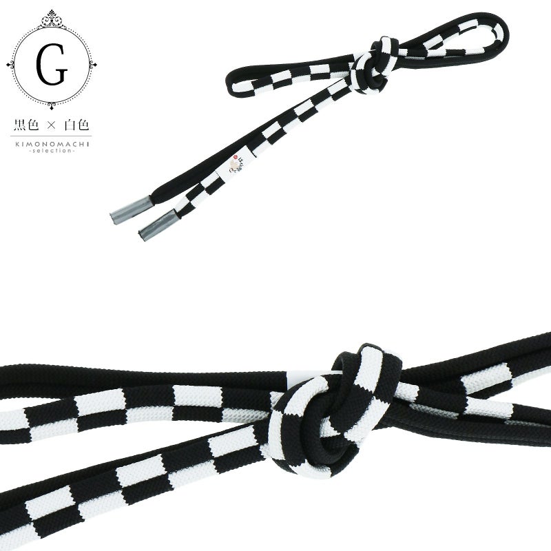 G.黒色×白色…半分は黒、半分は黒と白の市松模様でアクセントをつけた帯締めです。
