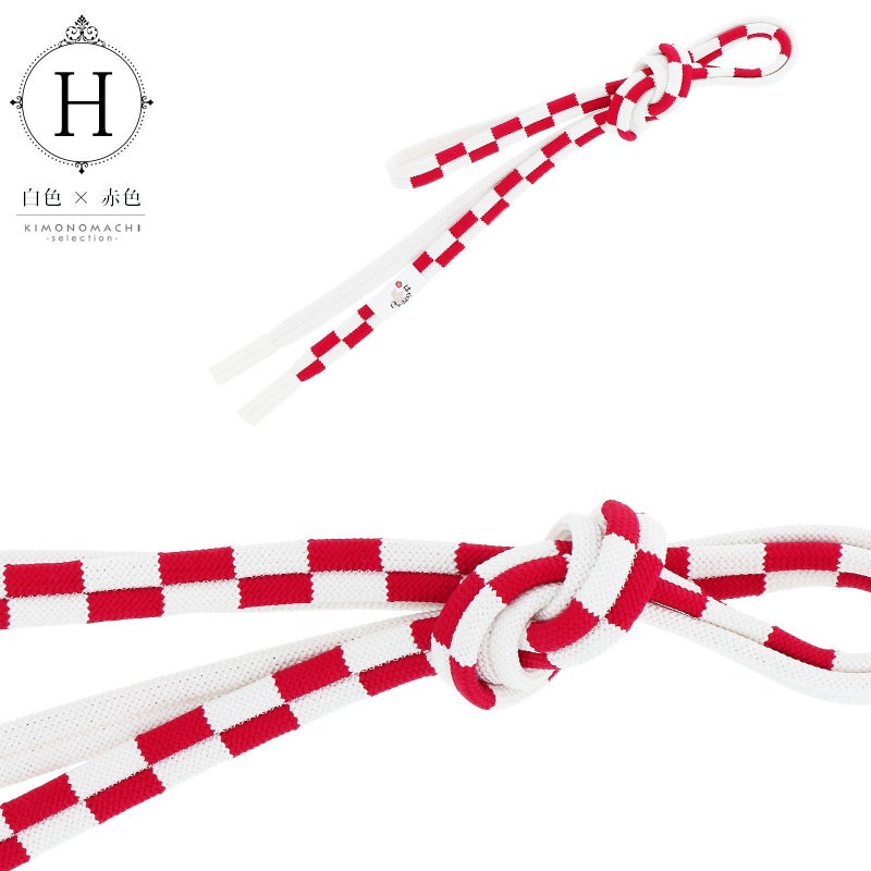 H.白色×赤…半分は白、半分は白と赤の市松模様でアクセントをつけた帯締めです。