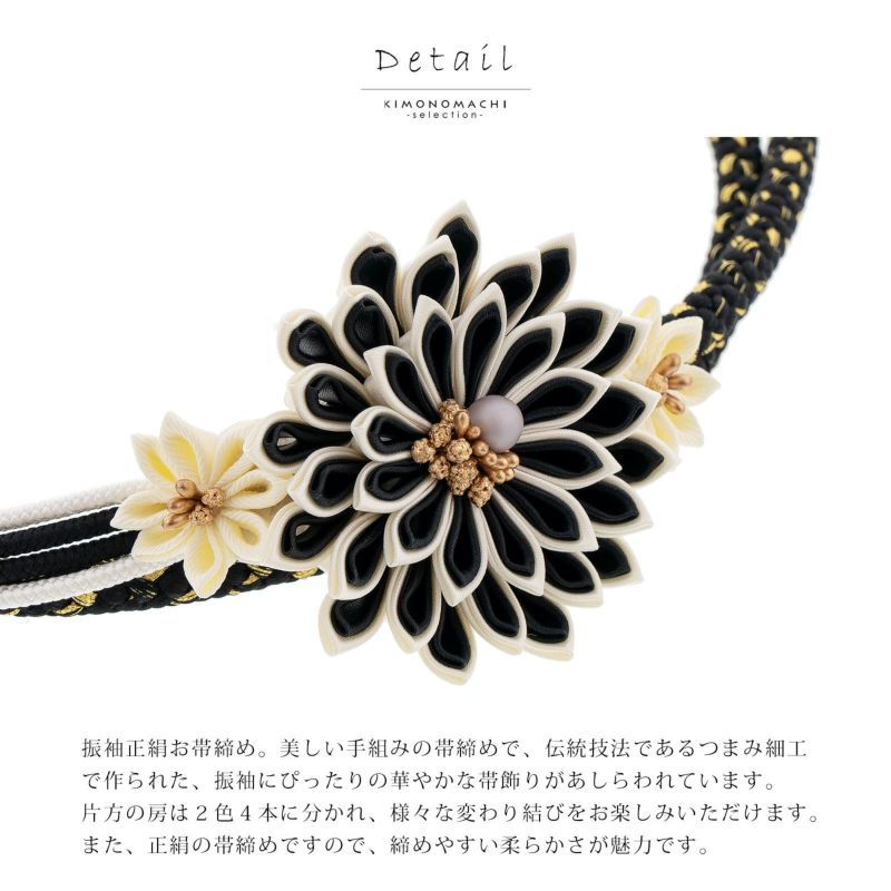 帯締め 振袖用 帯〆 単品「黒・グレー・白 つまみの剣菊」全3色 日本製 正絹 成人式 結婚式 振袖 正絹帯締め つまみ飾り 振袖用帯締め 着物 振袖小物