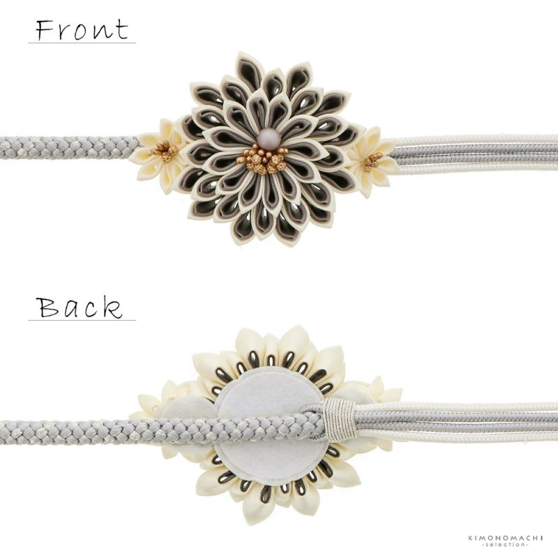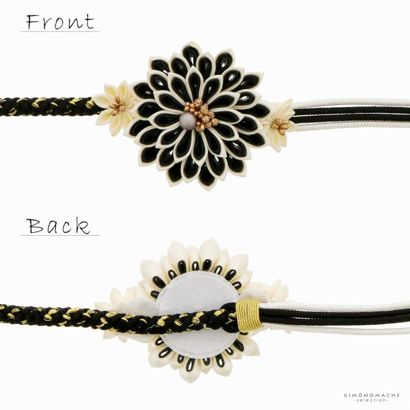 5. 帯締め 振袖用 帯〆 単品「黒・グレー・白 つまみの剣菊」全3色 日本製 正絹 成人式 結婚式 振袖 正絹帯締め つまみ飾り 振袖用帯締め 着物 振袖小物【メール便不可】