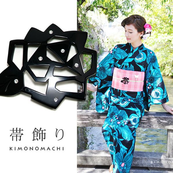 【Prices down2】プレート帯飾り「黒 薔薇」ラインストーン付き 浴衣小物 和装小物 【メール便不可】ss2506wkm10