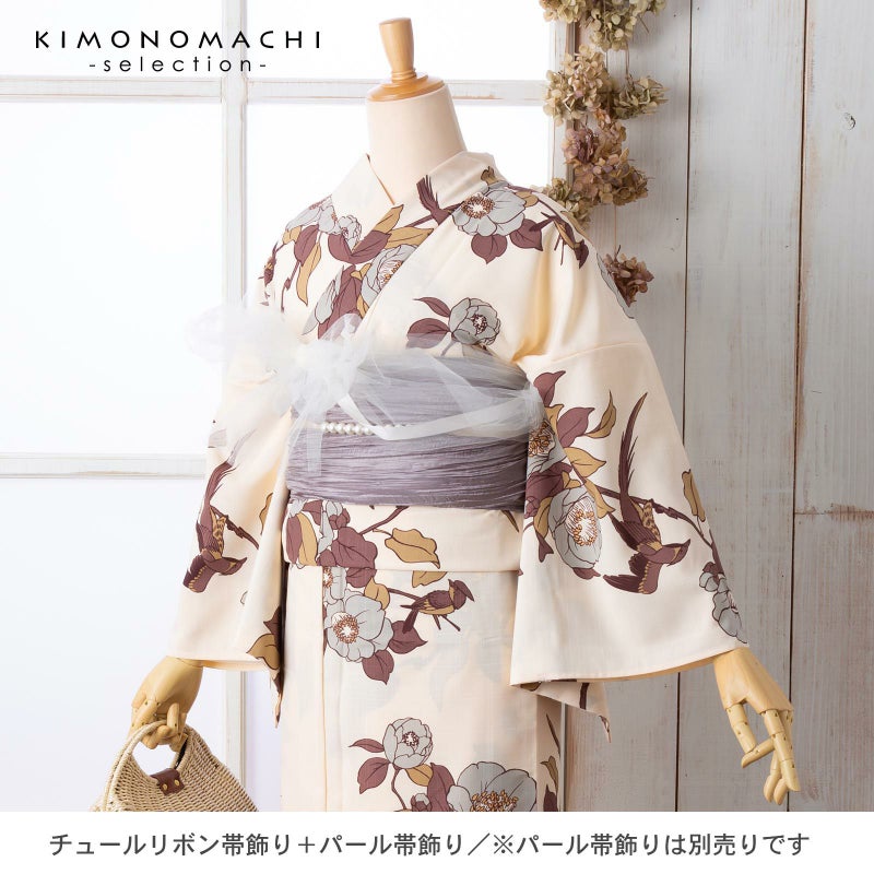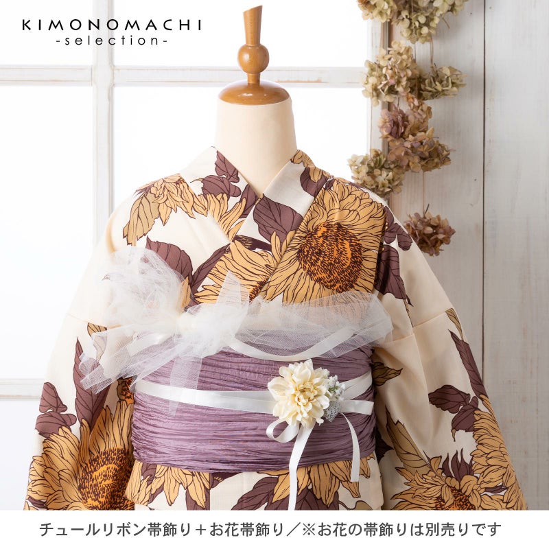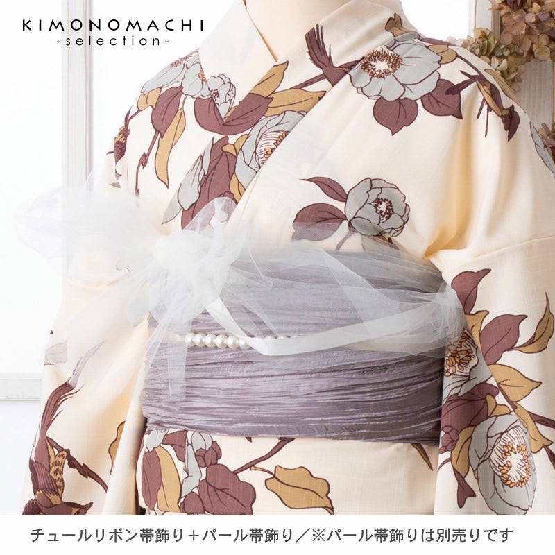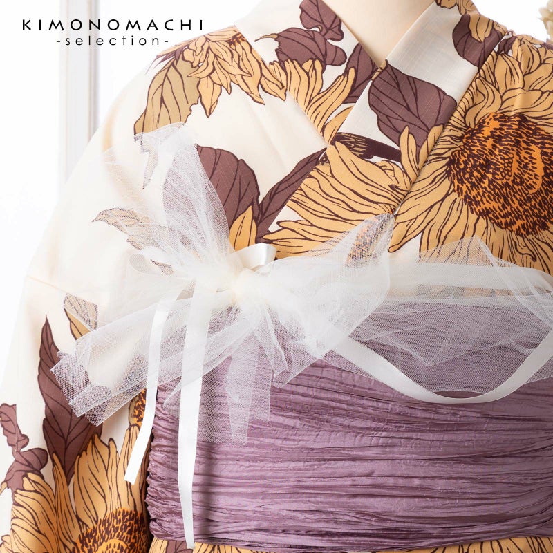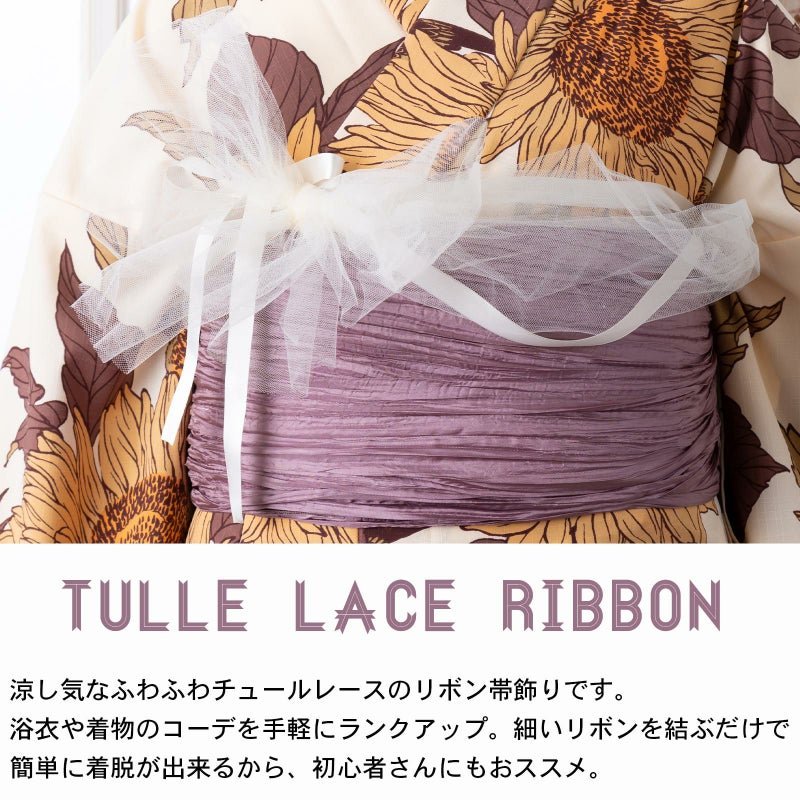 涼し気なふわふわチュールレースのリボン帯飾りです。浴衣や着物のコーデを手軽にランクアップできます。