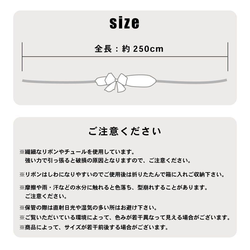 ※繊細なリボンやチュールを使用しています。強い力で引っ張ると破損の原因となりますので、ご注意ください。