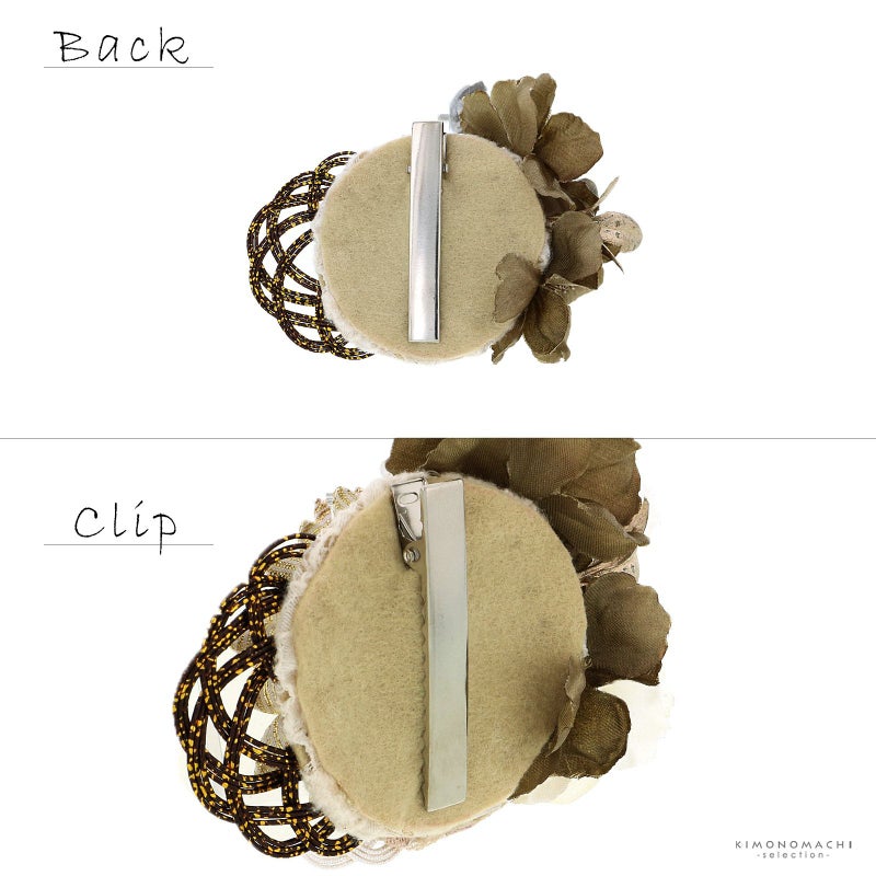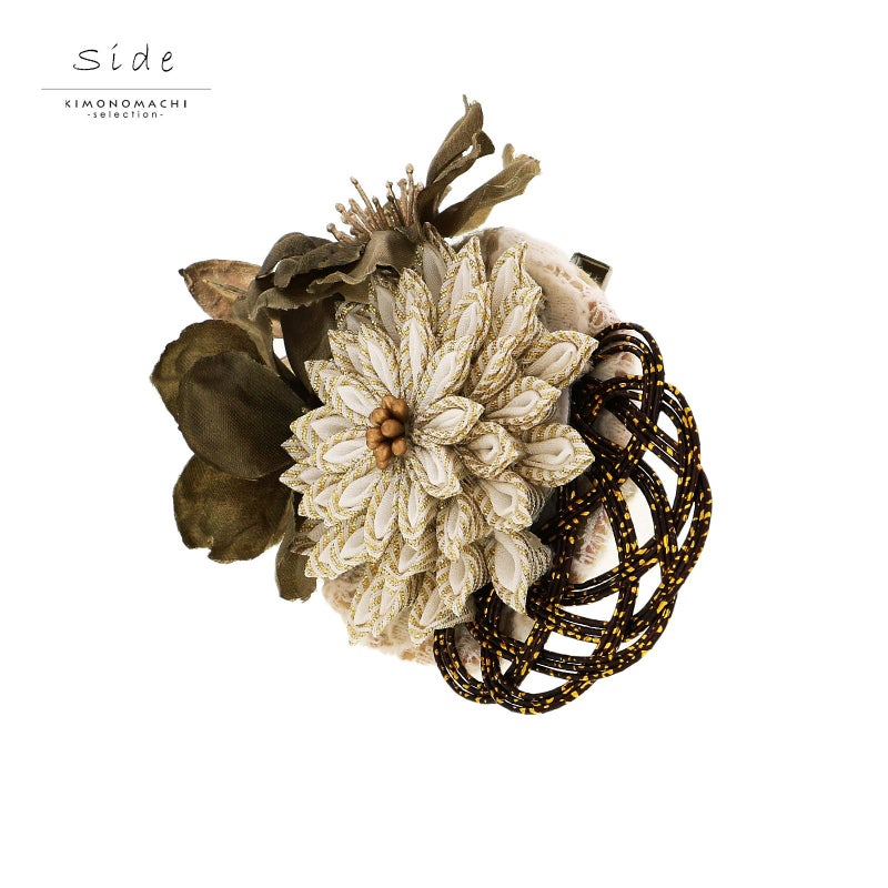 4. 帯留め 単品「カーキ 菊つまみ」日本製 成人式 結婚式 振袖 帯飾り つまみ飾り 振袖用帯留め 振袖用帯飾り 着物 振袖小物【メール便不可】