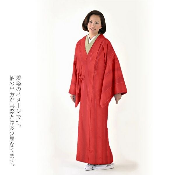 【Prices down2】正絹 雨コート 着尺 未仕立て「赤色 縞に番傘」はっ水加工 旭ガード 雨用着物コート【メール便不可】<T>ss2512hor70
