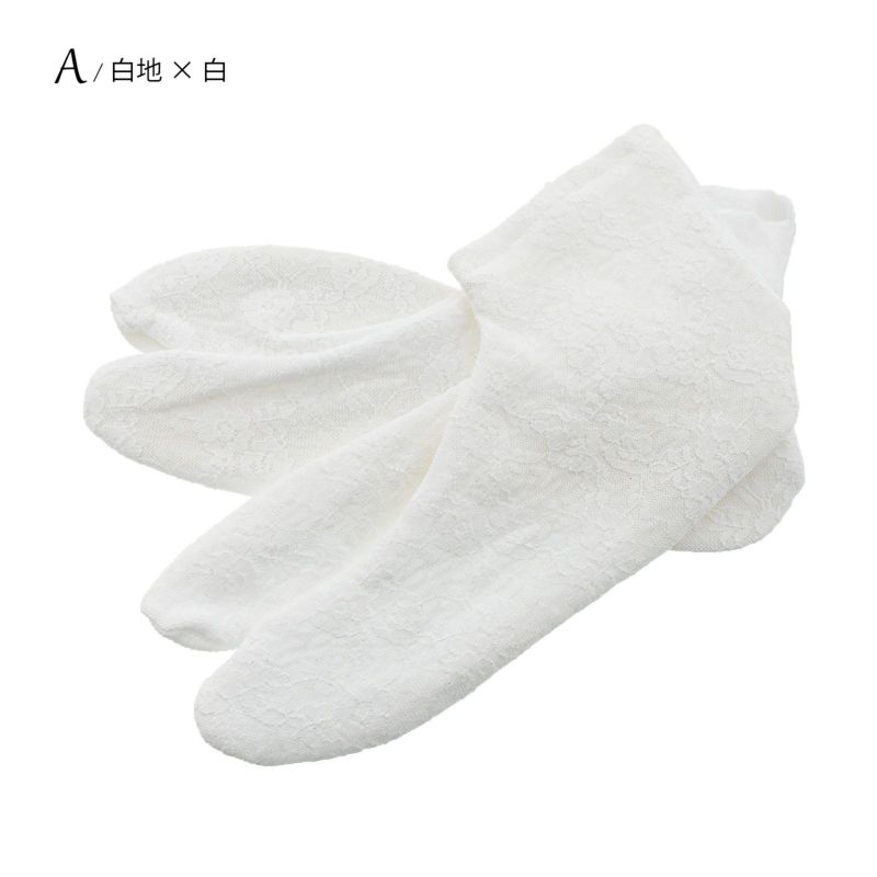 A.白地×白:オフホワイトの裏地、白のチュールに蔓バラのレースの表地を重ねたレース足袋。