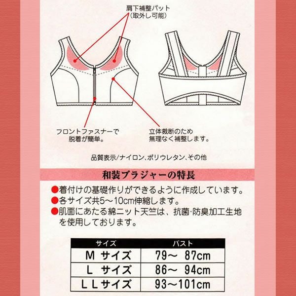 (卒業式応援75%SALE 2/19迄)和装ブラジャー 補整パット付きM、L、LLの3サイズ「白色 花柄」着付け小物<R>