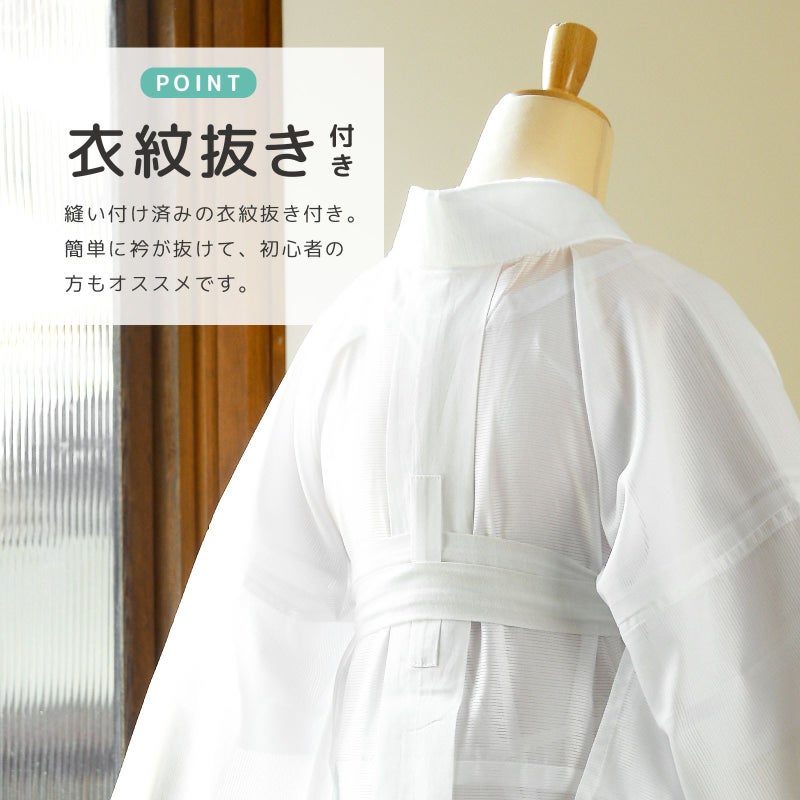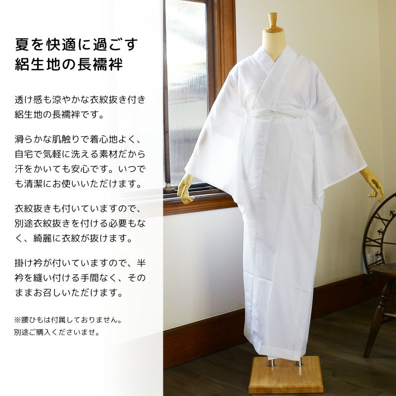 長襦袢 レディース 絽 洗える長襦袢 単品「夏用長襦袢 白 お仕立てあがり」S/M/L/LLサイズ 衣文抜き付き 長襦袢単品 女性用 夏用襦袢 洗える襦袢 半衿付き 和装下着 着物【メール便不可】