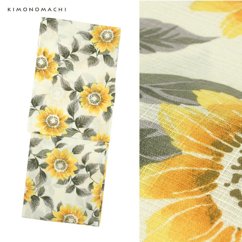 アイボリーの地に浅い抹茶色、黄色、淡い黄色で表現されたヒマワリの花。夏の太陽のような明るい黄色と、輪郭のない水彩調のぼかした表現がさわやかなデザインです。