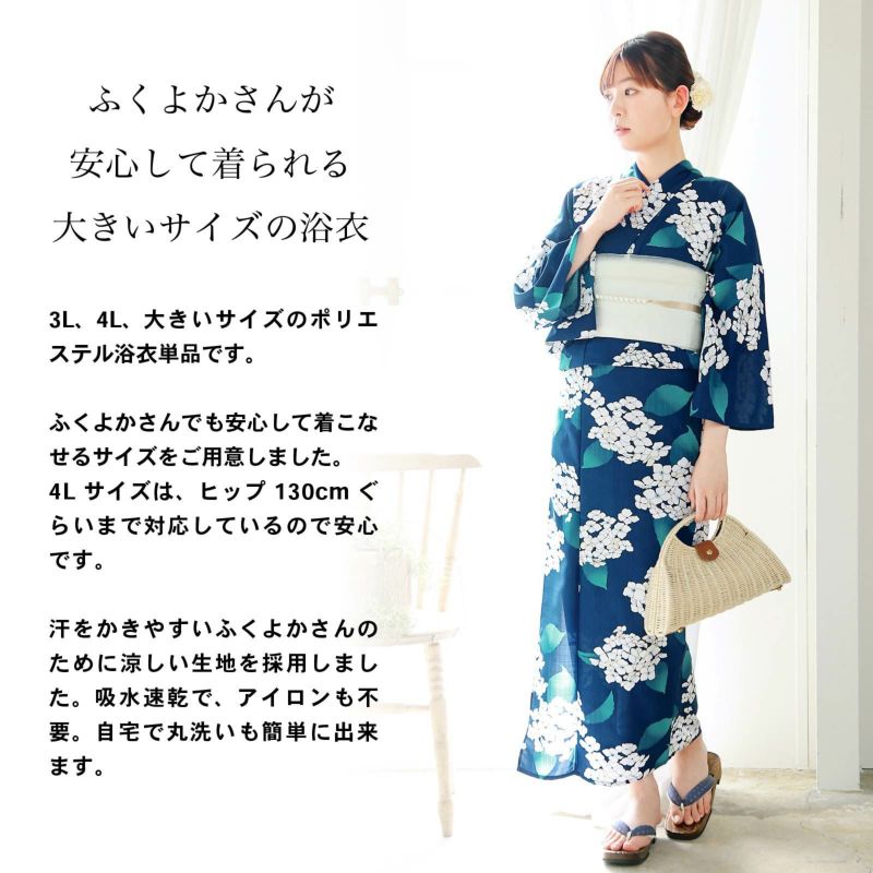 3L、4Lの大きいサイズのKIMONOMACHIオリジナル!吸水速乾、高機能ポリエステル浴衣、レディース浴衣単品です。