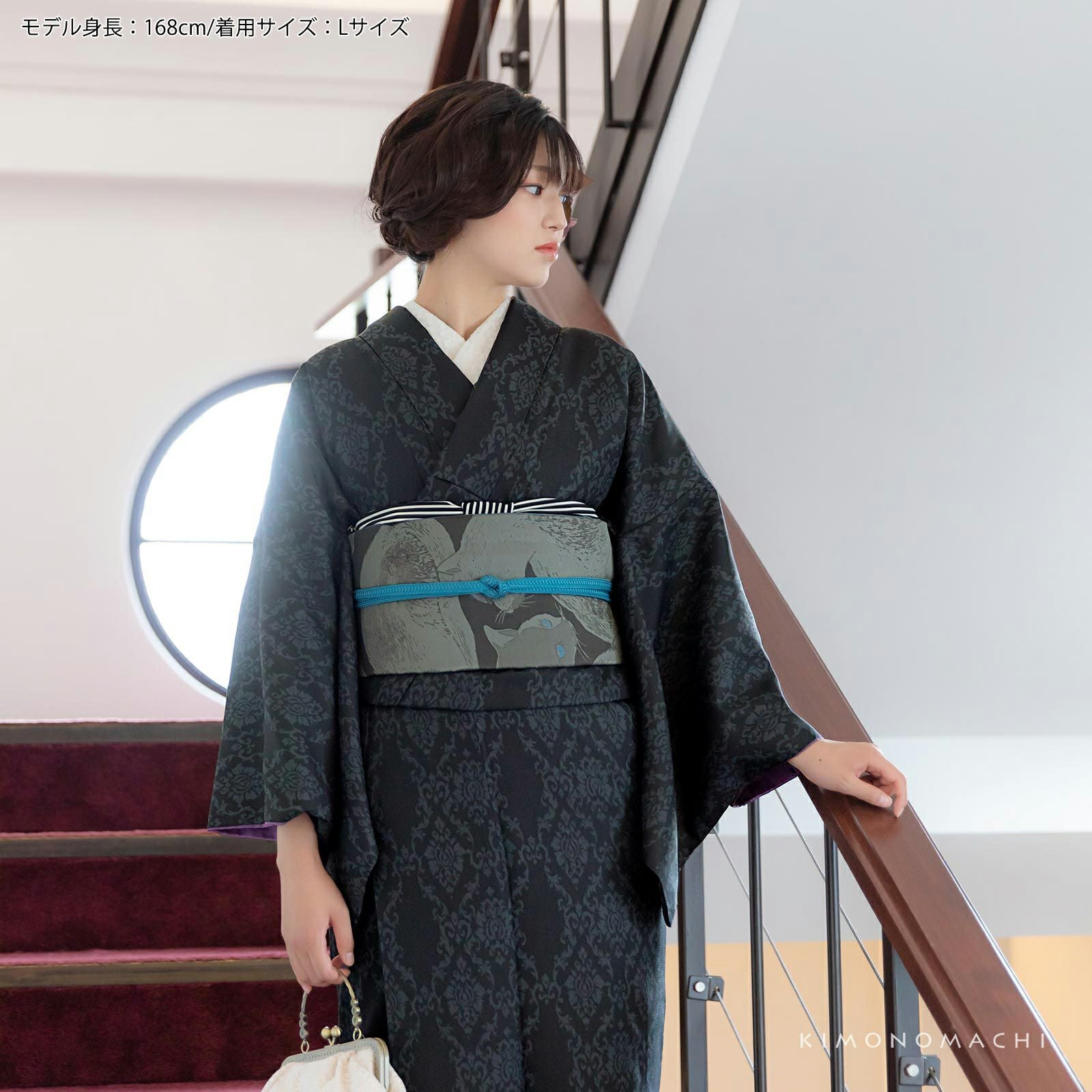 他の画像を見る 送料無料 KIMONOMACHI オリジナル!きもの福袋 個性派洗える着物 レトロモダン 古典柄 アンティーク着物風 洗える着物 セット「袷着物:アラベスクブラック+京袋帯:薄暮の灰猫」KIMONOMACHI オリジナル 着物と帯と帯揚げと帯締めの4点セット サイズS/M/L/LL コーディネート済み着物セット 小紋 レディース キモノ【メール便不可】 きもの町価格 ¥ 28,490 税込 在庫切れ カートに入れる お気に入りに登録する