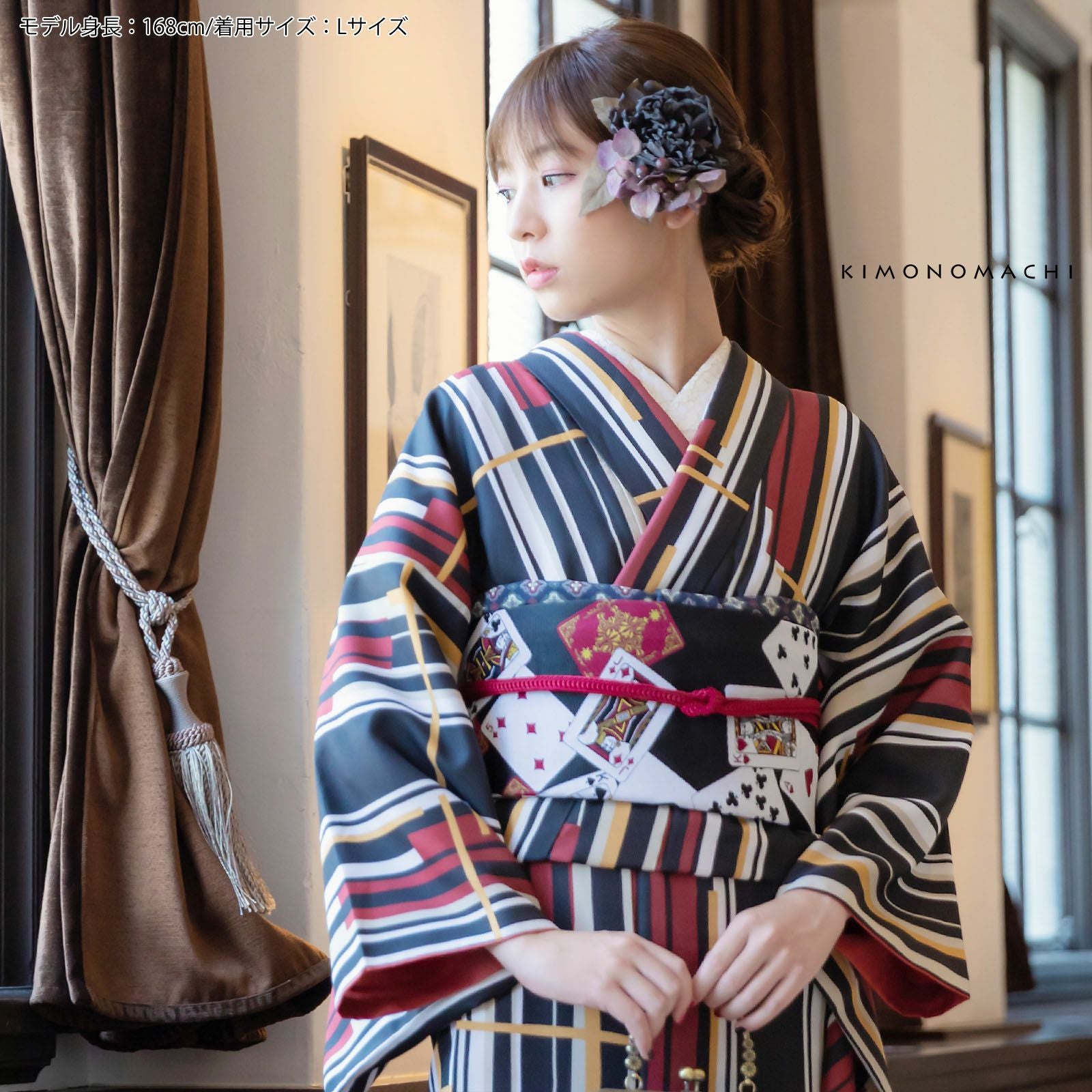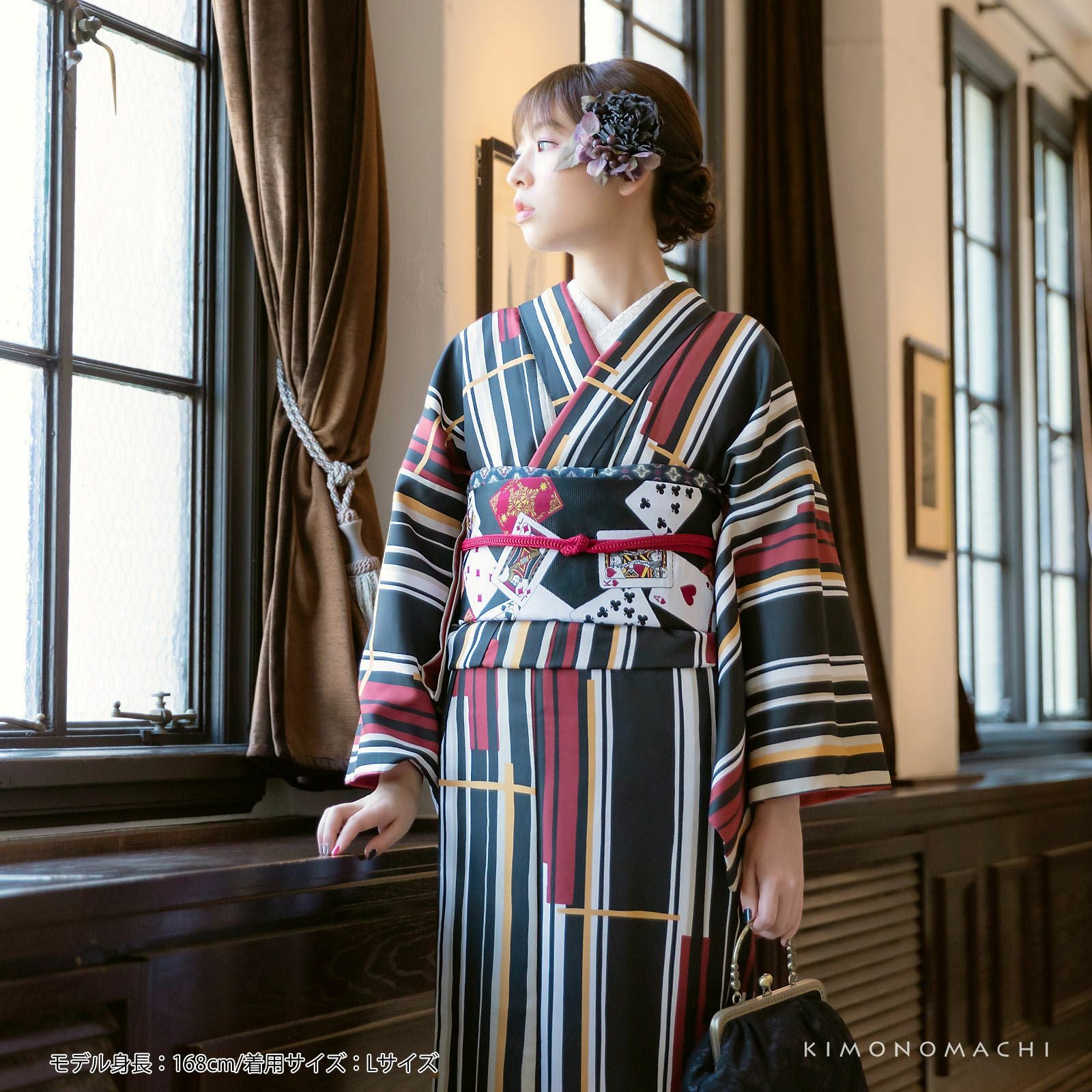 他の画像を見る 送料無料 KIMONOMACHI オリジナル!きもの福袋 個性派洗える着物 レトロモダン 古典柄 アンティーク着物風 洗える着物 セット「袷着物:ラインカラー黄薄香+京袋帯:黒トランプ」KIMONOMACHI オリジナル 着物と帯と帯揚げと帯締めの4点セット サイズS/M/L/LL コーディネート済み着物セット 小紋 レディース キモノ【メール便不可】 きもの町価格 ¥ 28,490 税込 在庫切れ カートに入れる お気に入りに登録する