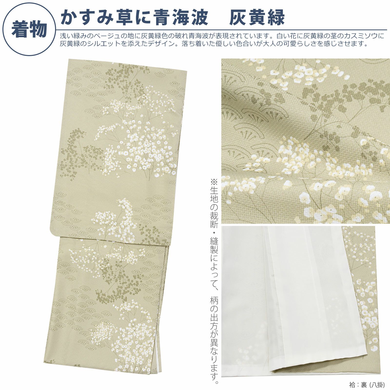 他の画像を見る 送料無料 【2024-2025年新作】KIMONOMACHI オリジナル!きもの福袋 個性派洗える着物 レトロモダン 古典柄 アンティーク着物風 洗える着物 セット「袷着物:かすみ草に青海波灰黄緑+京袋帯:日向の白猫」KIMONOMACHI オリジナル 着物と帯の2点セット サイズS/M/L/LL 2024-2025新作 コーディネート済み着物セット 小紋 レディース キモノ【メール便不可】 きもの町価格 ¥ 23,100 税込 在庫切れ カートに入れる お気に入りに登録する