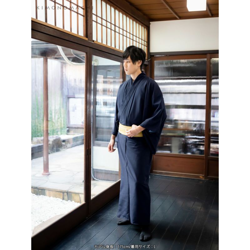 4. 着物 男性 メンズ 洗える着物 袷着物 単品 「ネイビー 紬風」 男着物 男性用着物 男性着物 メンズ着物 お仕立て上がり ポリエステル着物 プレタ着物 男着物単品 mens kimono awase 【メール便不可】