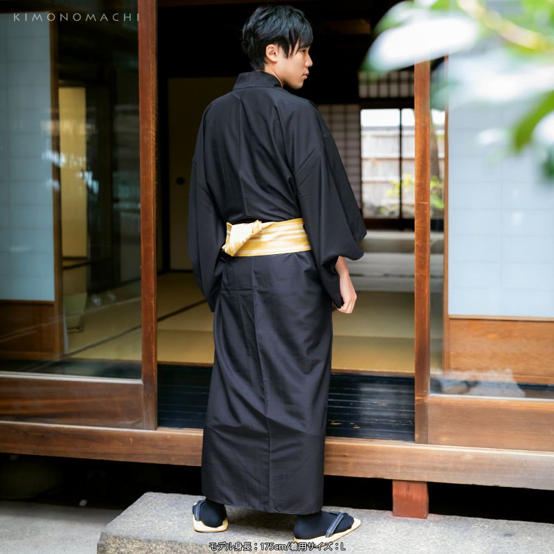 4. 着物 男性 メンズ 洗える着物 袷着物 単品 「ブラック 紬風」 男着物 男性用着物 男性着物 メンズ着物 お仕立て上がり ポリエステル着物 プレタ着物 男着物単品 mens kimono awase 【メール便不可】