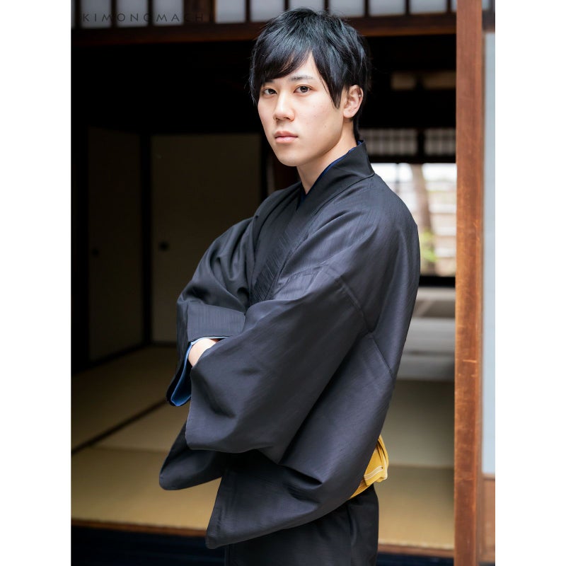 紬風生地の洗える男性用袷着物 着物 男性 メンズ 洗える着物 袷着物 単品 「ブラック 紬風」 男着物 男性用着物 男性着物 メンズ着物 お仕立て上がり ポリエステル着物 プレタ着物 男着物単品 mens kimono awase 【メール便不可】