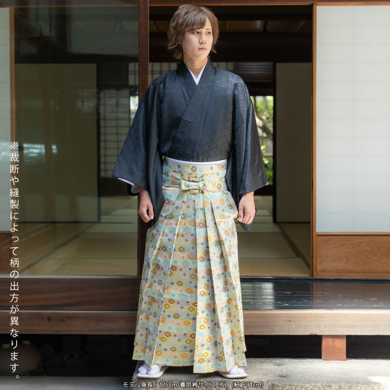 3. 袴 金襴袴 男性袴 馬乗り袴 単品「桜鼠色系段ぼかし亀甲文」4サイズ S/M/L/LL 身長150cm~180cmまで フォーマル 成人式 卒業式 結婚式 男性 メンズ 晴れ着【メール便不可】