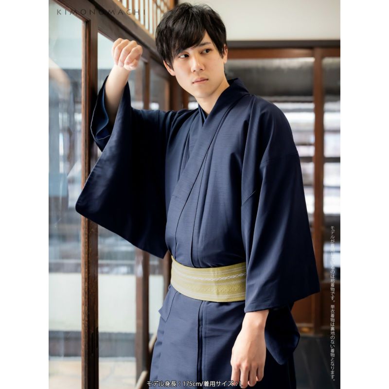 着物 男性 メンズ 洗える着物 単衣 単品「ネイビー 紬風」S/M/L/LL/3L 男着物 男性用着物 男性着物 メンズ着物 お仕立て上がり ポリエステル着物 単衣着物 ひとえ プレタ着物 男着物単品 mens kimono hitoe【メール便不可】