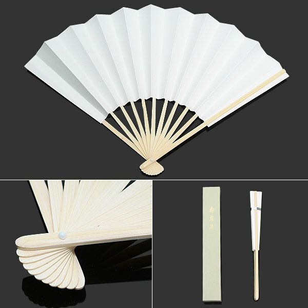 【カラー】地紙は白色、骨は柔らかなベージュイエロー系の自然な色合い。