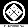 丸型のポリ生地に織物用不変色印刷インキで紋を入れ、 裏面を特殊接着剤で加工し、 保護ケースに入れています。