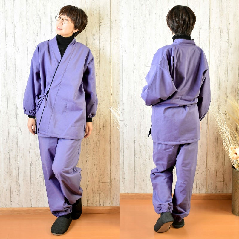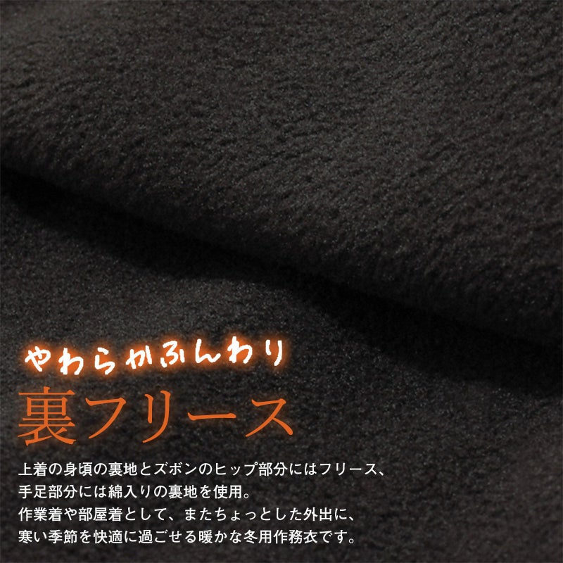 裏地フリースと中綿入りで暖かな男女兼用作務衣です。上着、ズボンの上下に分かれています。