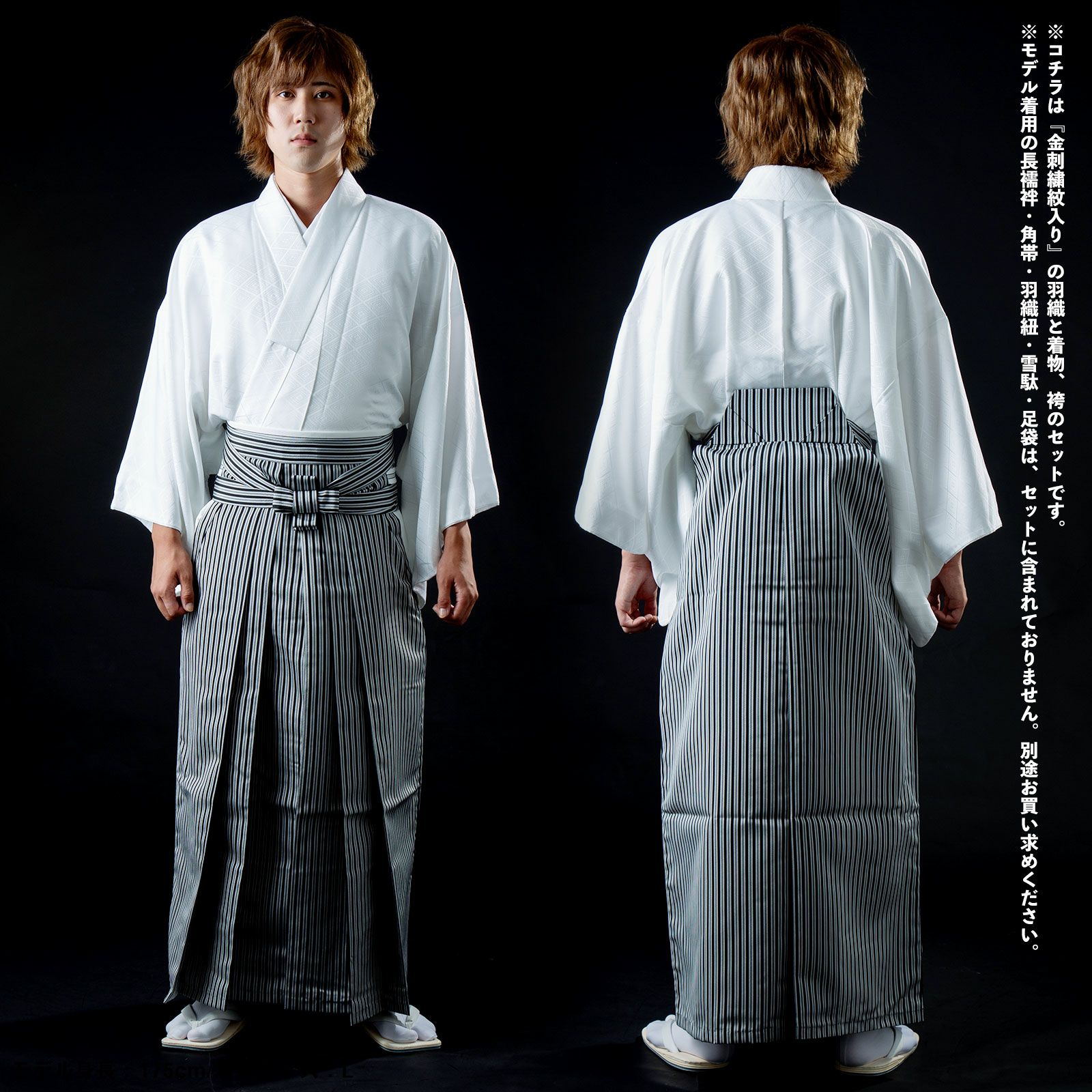 他の画像を見る 送料無料 男性用 着物、羽織、袴の3点セット 男性 メンズ 金刺繍紋入り 袴が選べる羽織袴セット 「白 菱、金刺繍紋 + 縞袴」 紋付き袴 紋付袴 白紋付 成人式 卒業式 結婚式 地紋入り 【メール便不可】 きもの町価格 ¥ 25,960 税込 カートに入れる お気に入りに登録する