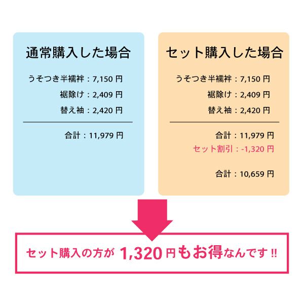 【商品内容】うそつき半襦袢1点・裾よけ1点・替え袖1点の計3点セット