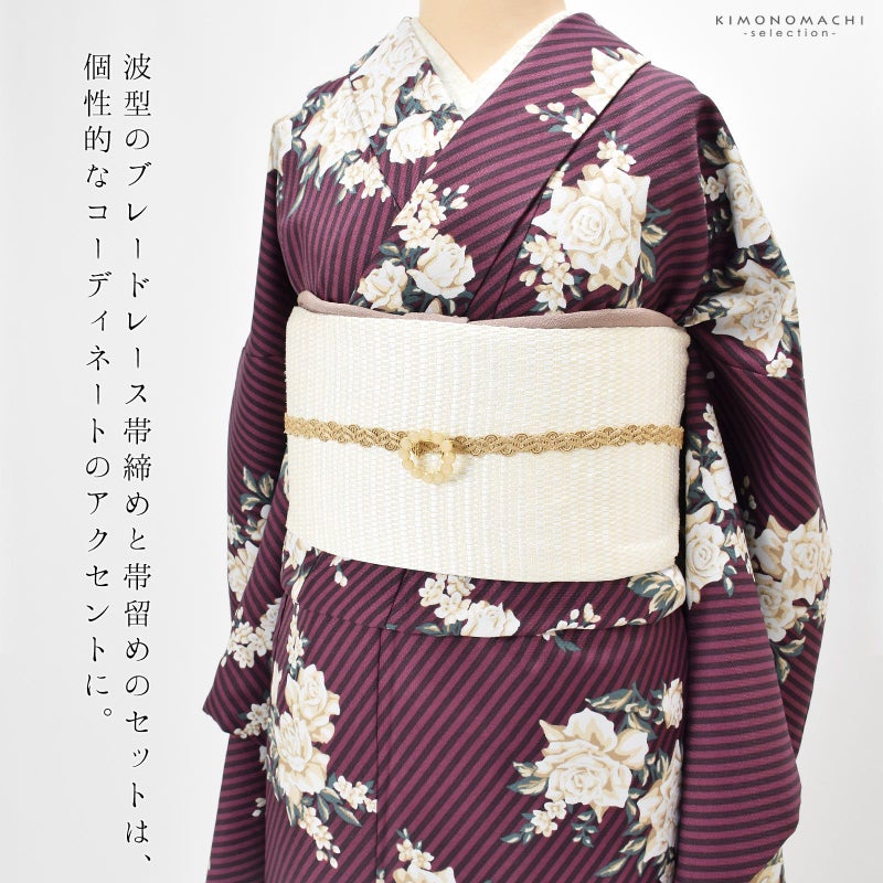 帯締め 帯留め 2点セット 「ホワイト・ブラック・アニスグリーン・ベージュ・ワイン」 レース 帯〆 おびじめ 着物 浴衣 和装 和服 普段着 きもの カジュアル レトロ アンティーク 上品 洒落小物
