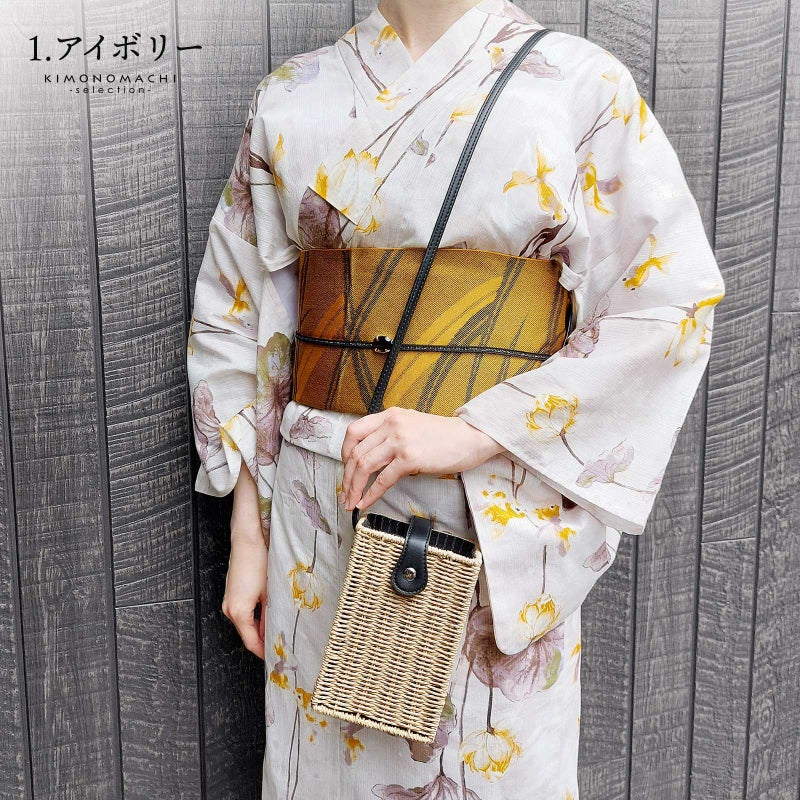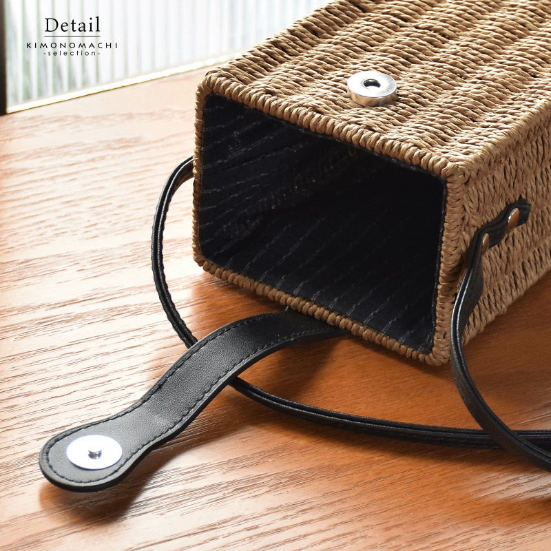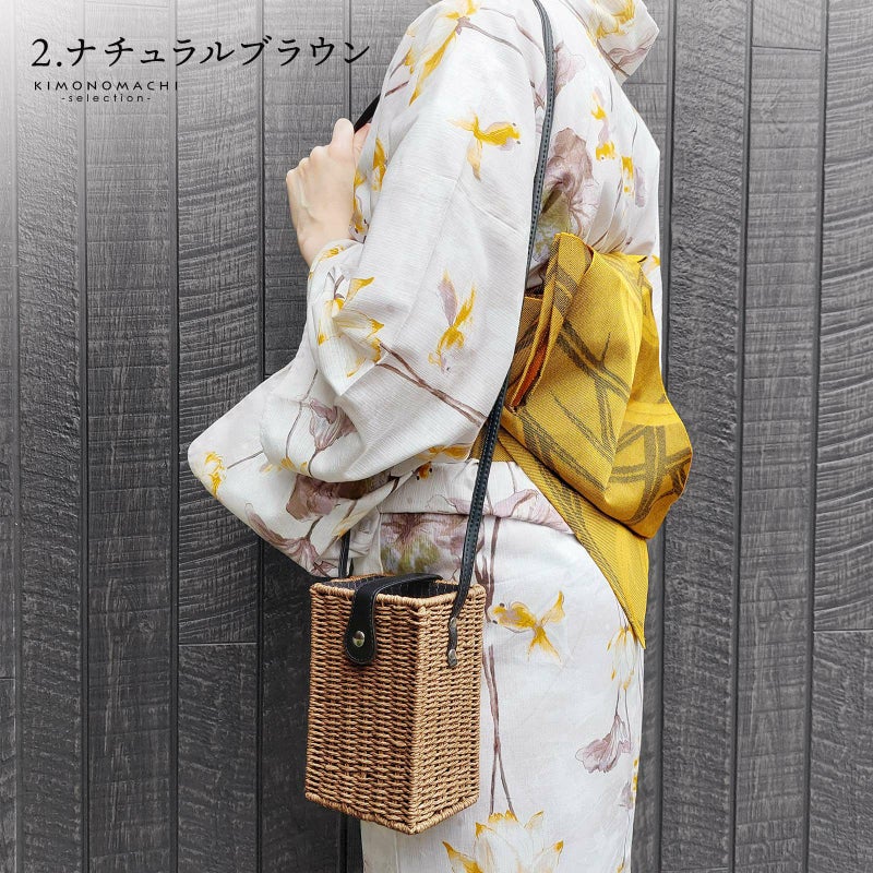 和紙素材を使用したカゴバッグです。軽さと暖かみのある風合いが和装にぴったり。