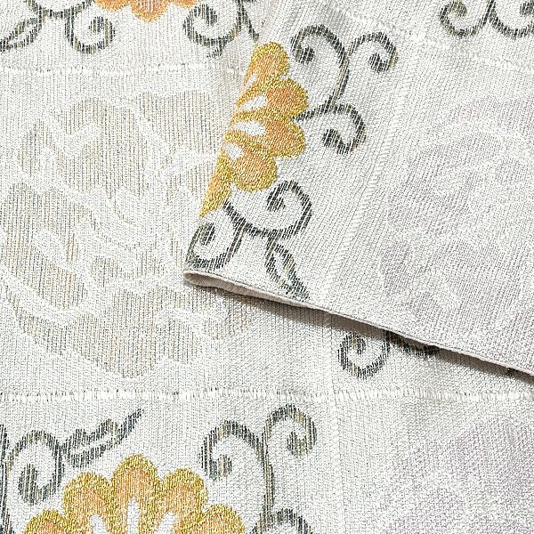 上品な煌びやかさの銀糸の市松に花文。
