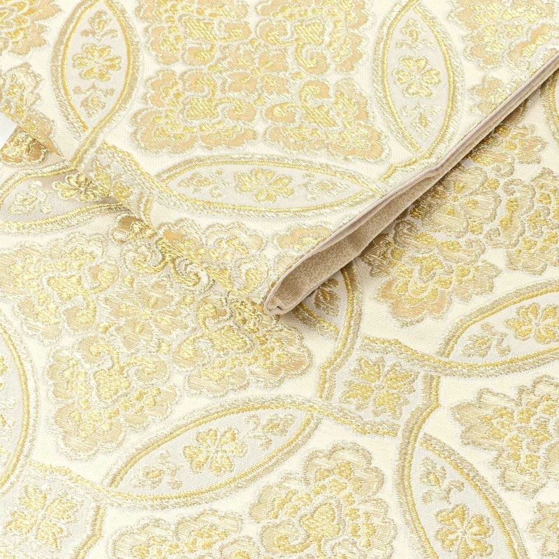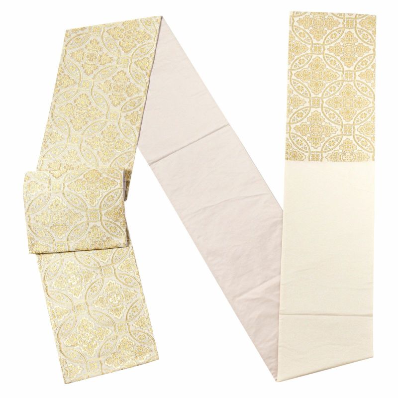 振袖 袋帯 単品「生成り色×金 輪違に唐花」六通柄 日本製 お仕立て上がり 振袖用 袋帯 お仕立て済 振袖帯 結婚式 成人式 フォーマル【メール便不可】