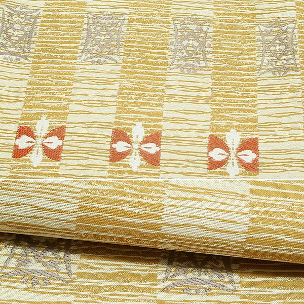 【Prices down2】西陣織 洒落袋帯「ごく淡いベージュ 縞に菱」岡文織物謹製お仕立て代込 西陣織袋帯【メール便不可】<T>ss2509ofr75