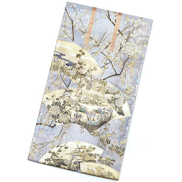 玉虫のように美しく光る引き箔が施された優麗な彩りの帯地。