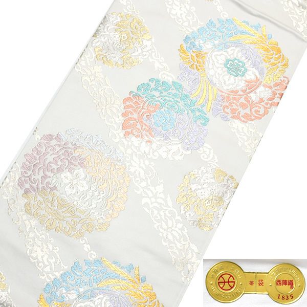 絢爛さがありつつも、繊細さ、格調高さのある華やぎを演出する、上品な華やかさで彩る西陣織袋帯。