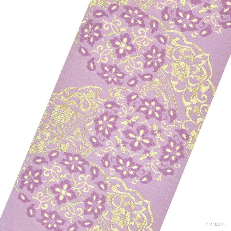 礼装向け 袋帯 単品 お仕立て上がり「薄葡萄色 雪輪に鏡、華紋」フォーマル 全通柄 ポリエステル帯 日本製 訪問着 留袖【メール便不可】ss2506ofk10