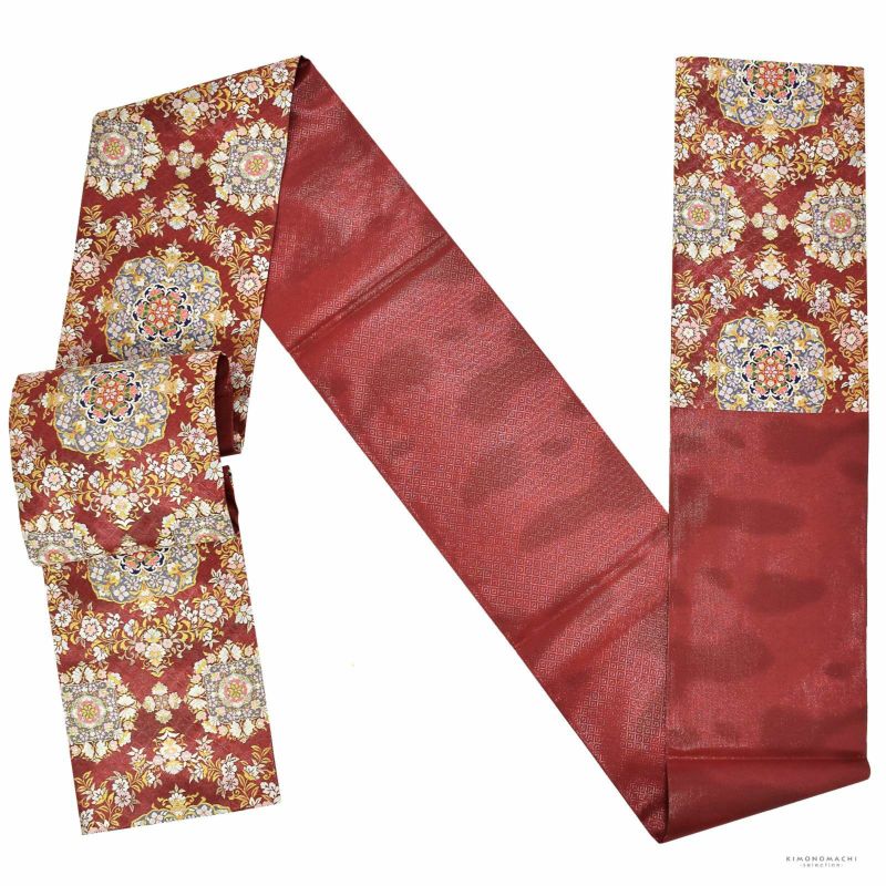 西陣織 袋帯 単品 お仕立て上がり「赤茶色 花亀甲華文」浅田叡一織物 謹製 フォーマル 六通柄 日本製 京都 西陣 訪問着 留袖【メール便不可】ss2506ofk10