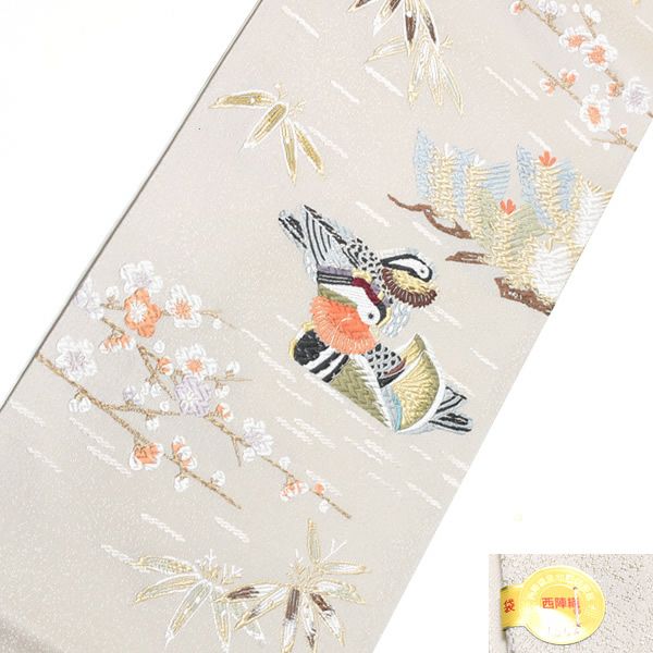 他の画像を見る 送料無料 店頭あり 品位ある大人の装いに 袋帯 【Prices down3】礼装袋帯「オフホワイト 松竹梅鴛鴦文」未仕立て 京都西陣 六通柄 羽田登喜男監修 西陣織 【メール便不可】<T>ss2512ofk30 きもの町価格 ¥ 132,000 税込 カートに入れる お気に入りに登録する