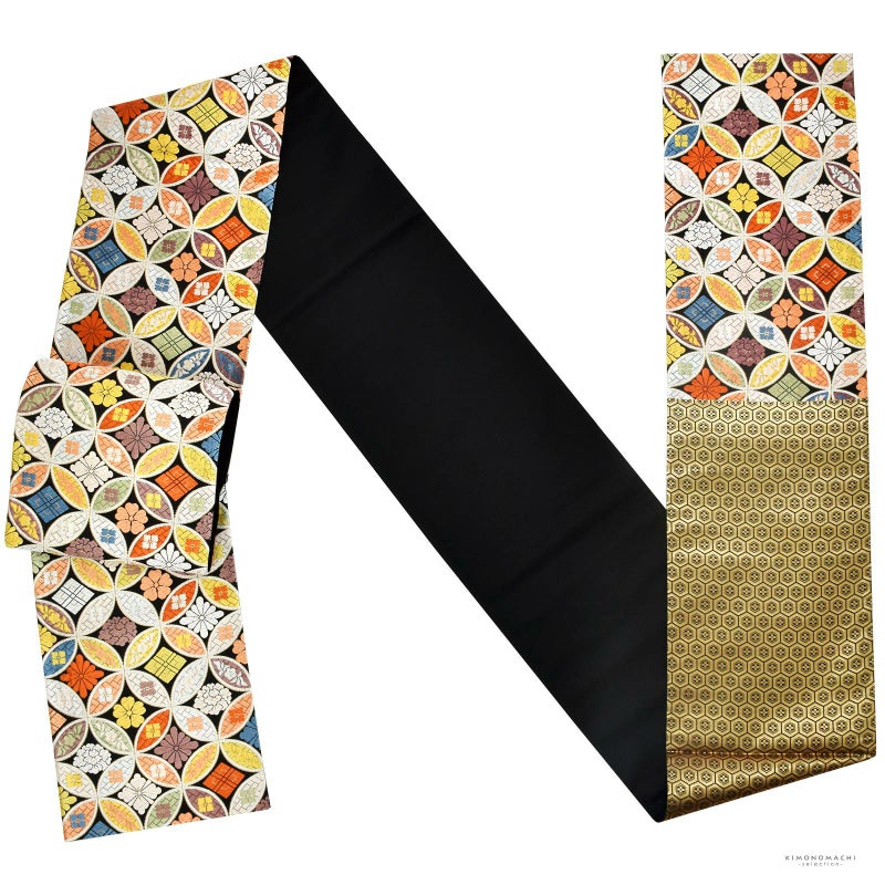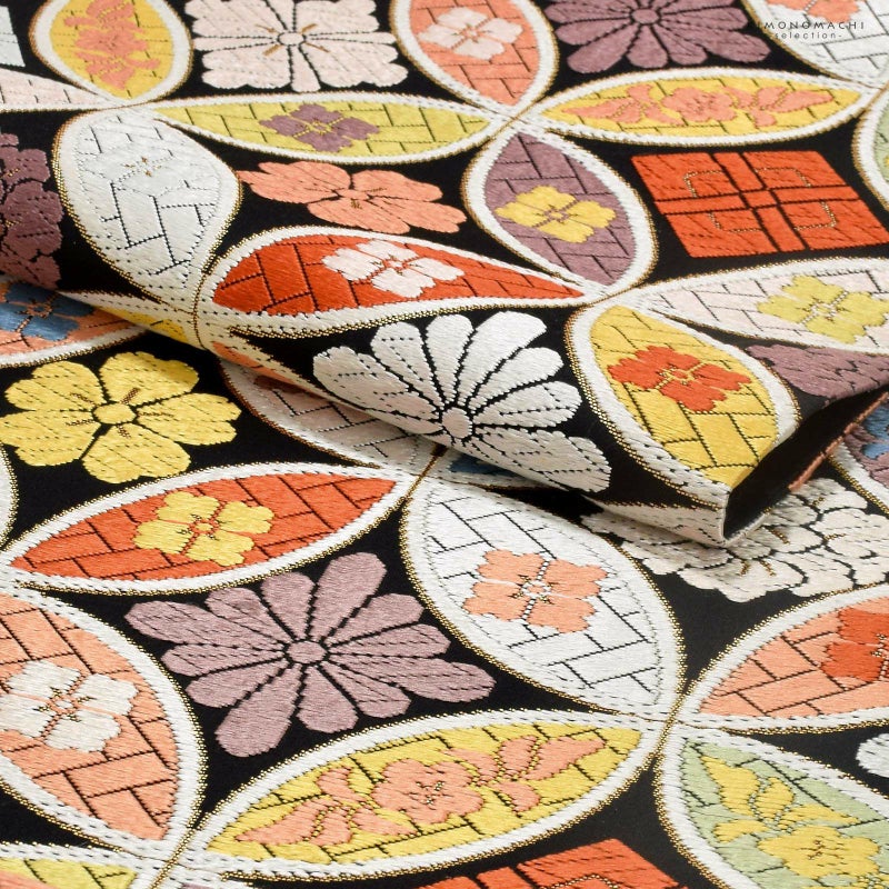 西陣織 袋帯 単品 お仕立て上がり「黒色 七宝花文」河合美術織物(株)謹製 フォーマル 六通柄 日本製 京都 西陣織 振袖帯 訪問着 留袖【メール便不可】ss2512ofk10