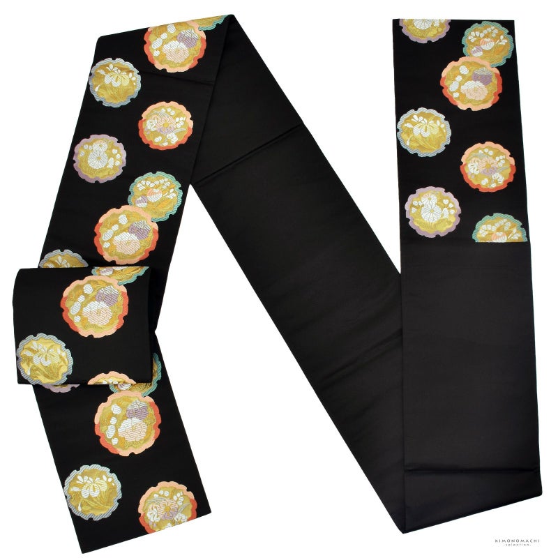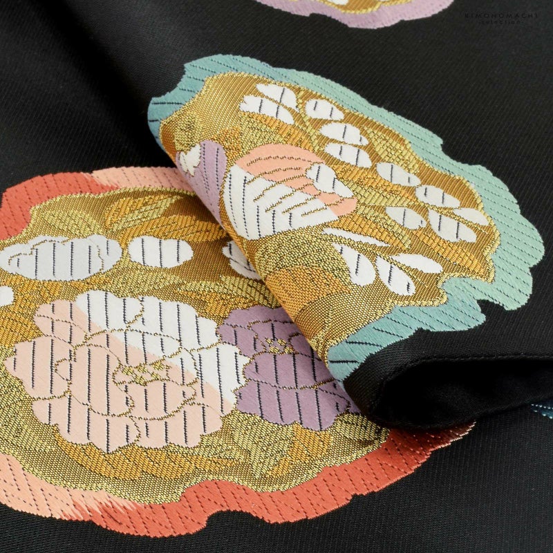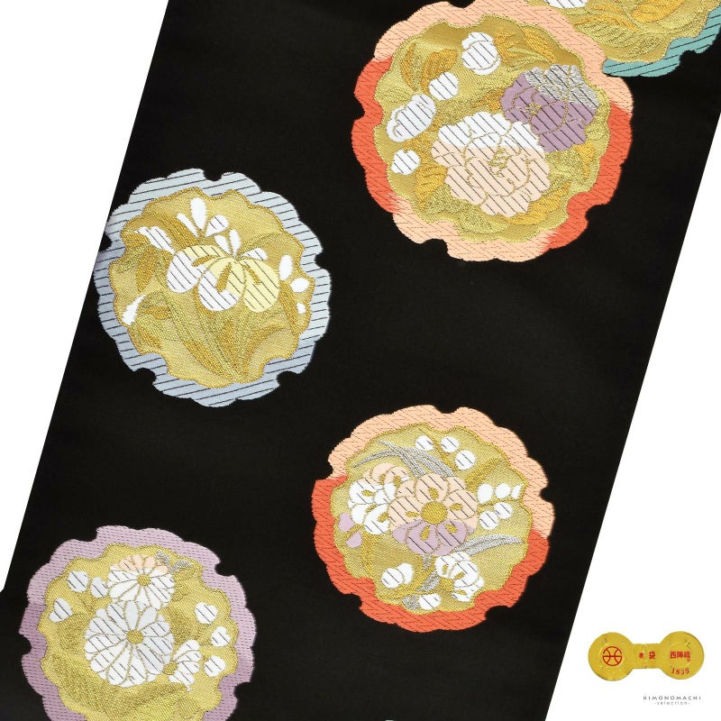 西陣織 袋帯 単品 お仕立て上がり「黒色 雪輪花飾文」(株)白寿苑 謹製 フォーマル 六通柄 日本製 京都 西陣織 訪問着 留袖【メール便不可】ss2512ofk10