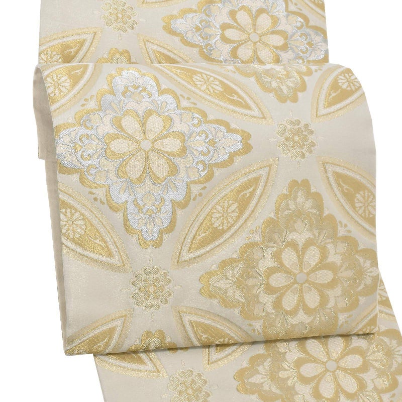 礼装向け 袋帯 単品 お仕立て上がり「ベージュゴールド 七宝花菱」フォーマル 全通柄 ポリエステル帯 日本製 訪問着 留袖【メール便不可】