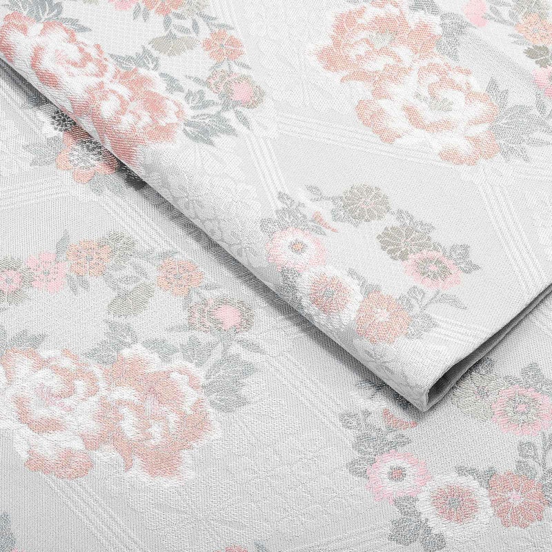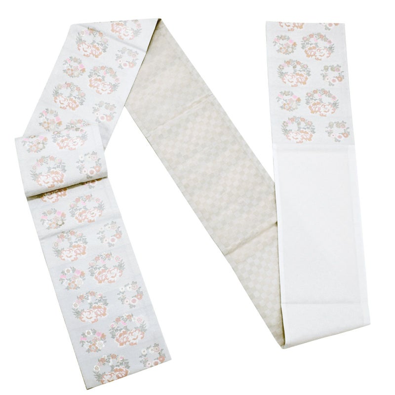 袋帯 礼装用袋帯 単品 ブランド帯 JAPAN STYLE ジャパンスタイル お仕立て上がり「白 菱格子に花の丸」フォーマル 六通柄 ポリエステル帯 日本製 訪問着 留袖<T>【メール便不可】