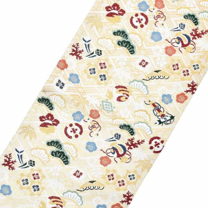 袋帯 礼装用袋帯 単品 ブランド帯 JAPAN STYLE ジャパンスタイル お仕立て上がり「生成り色 花菱に宝尽くし」フォーマル 六通柄 正絹帯 日本製 訪問着 留袖<T>【メール便不可】