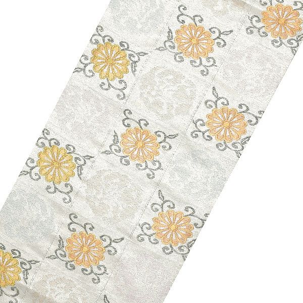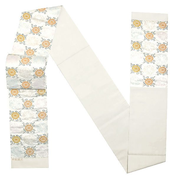 上品な煌びやかさの銀糸の市松に花文。