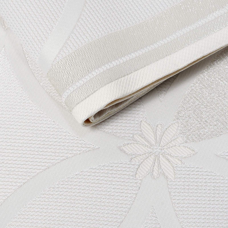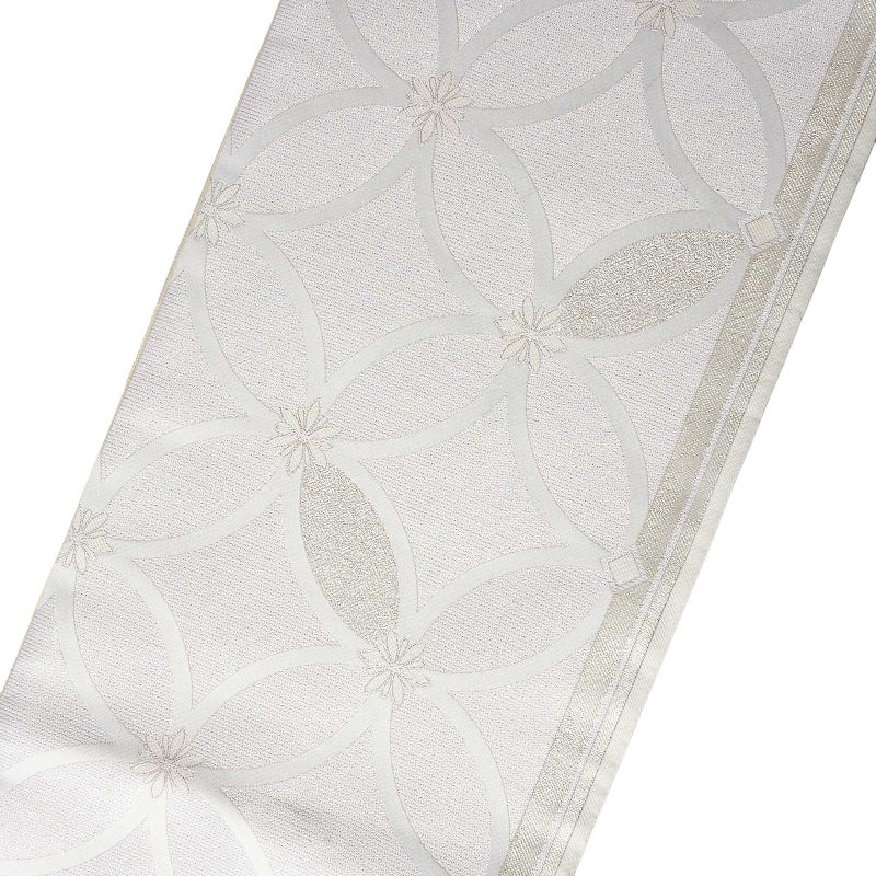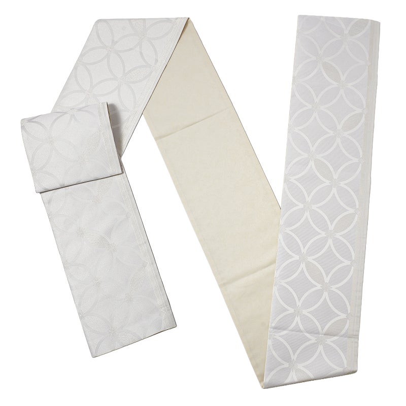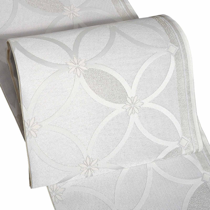 礼装向け 袋帯 単品 お仕立て上がり「白練色 花七宝」全通柄 日本製 フォーマル ポリエステル帯 訪問着 留袖【メール便不可】