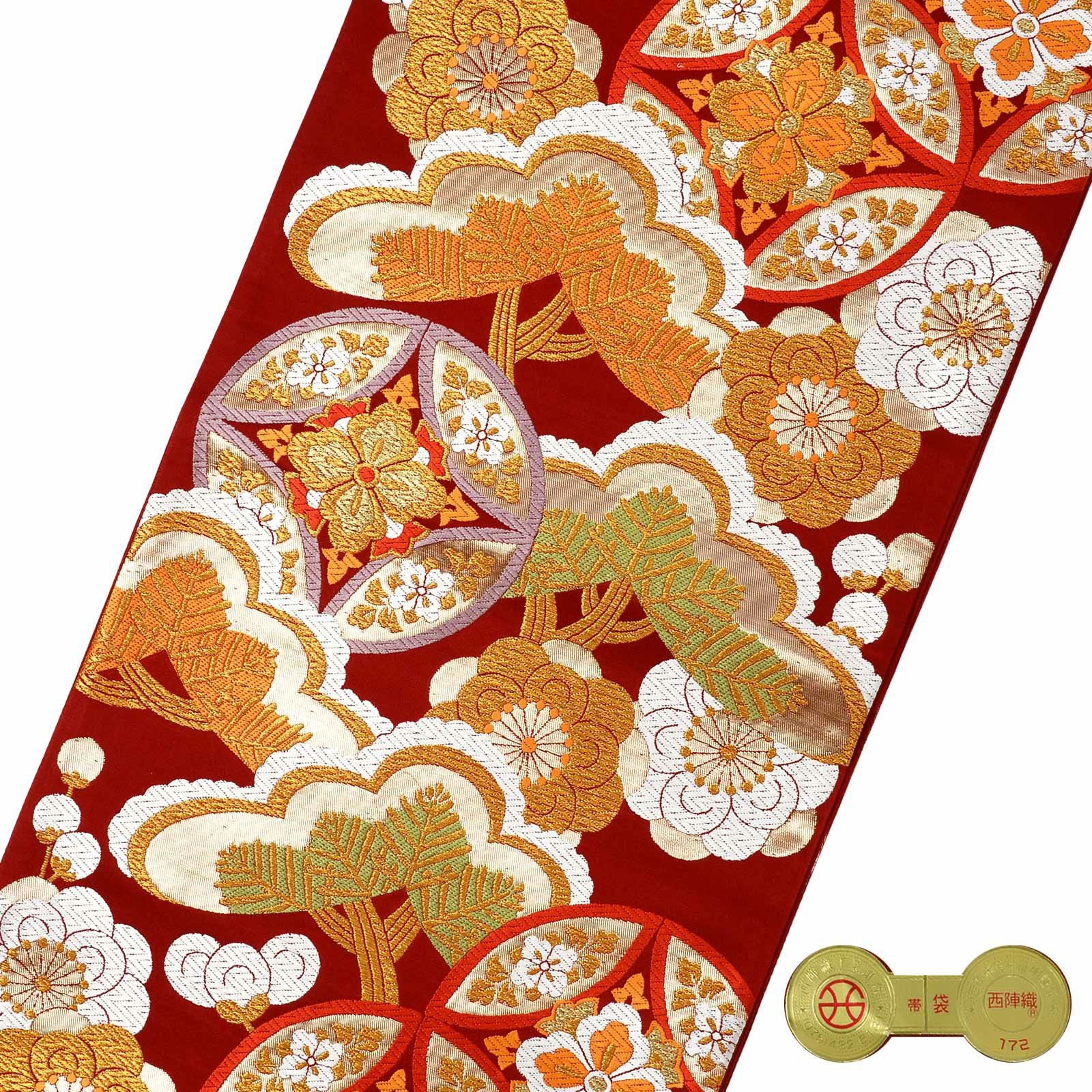 他の画像を見る 送料無料 華やかな振袖帯 袋帯 お手持ちの振袖、ママ振・姉振に合わせて 振袖 袋帯 単品「赤地 七宝に梅松」日本製 西陣織 西陣織証紙番号 No.172 岡文織物株式会社 六通柄 お仕立て上がり 振袖用 袋帯 お仕立て済 振袖帯 結婚式 成人式 フォーマル【メール便不可】 きもの町価格 ¥ 39,800 税込 カートに入れる お気に入りに登録する