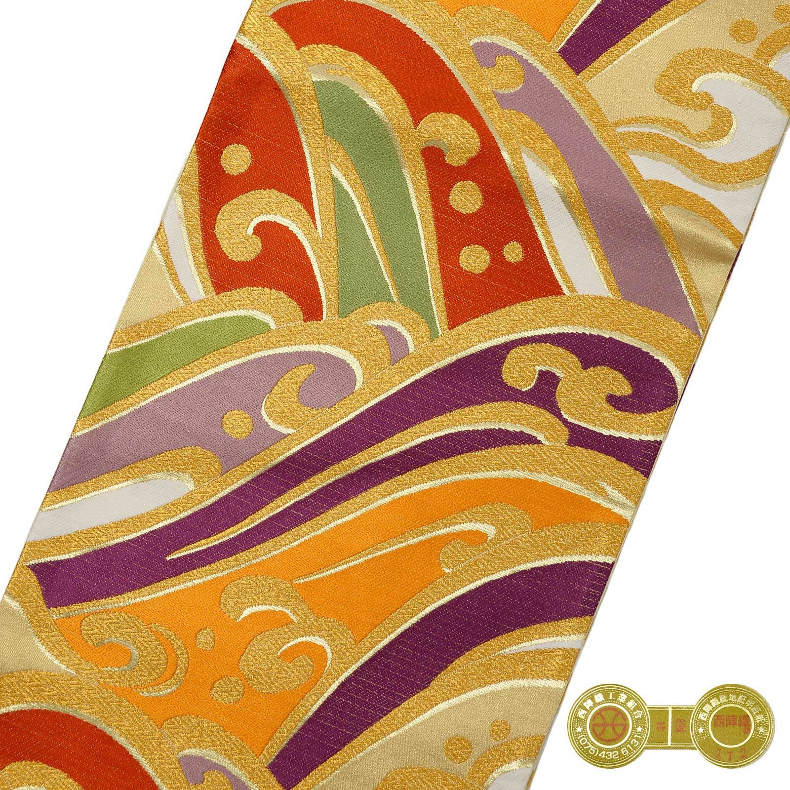 他の画像を見る 送料無料 華やかな振袖帯 袋帯 お手持ちの振袖、ママ振・姉振に合わせて 振袖 袋帯 単品「多色 変わり波」日本製 西陣織 西陣織証紙番号 No.172 岡文織物株式会社 六通柄 お仕立て上がり 振袖用 袋帯 お仕立て済 振袖帯 結婚式 成人式 フォーマル【メール便不可】 きもの町価格 ¥ 39,800 税込 カートに入れる お気に入りに登録する